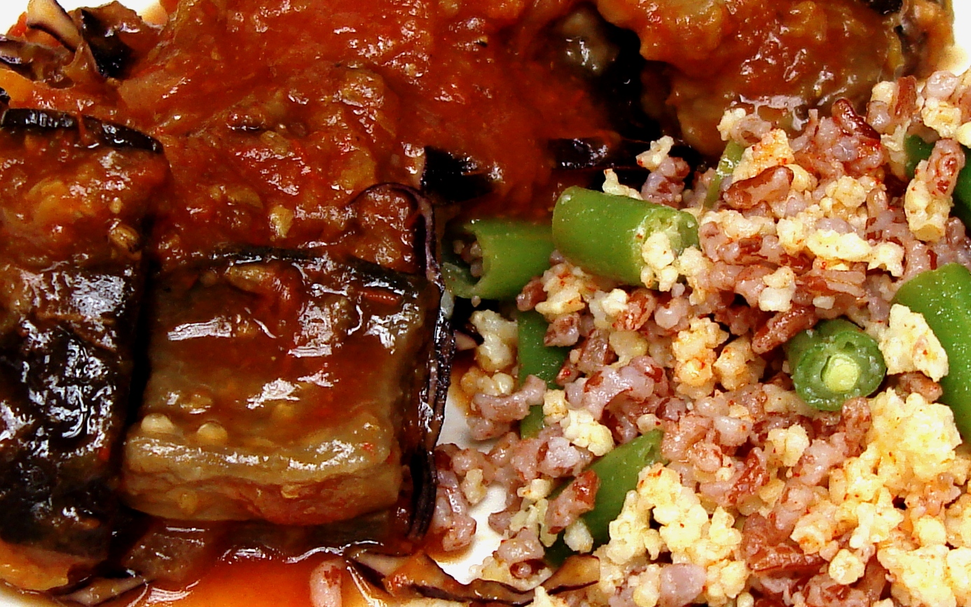 - Seitan with lemon dill sauce and summer squash; asian eggplant and sweetcorn paella